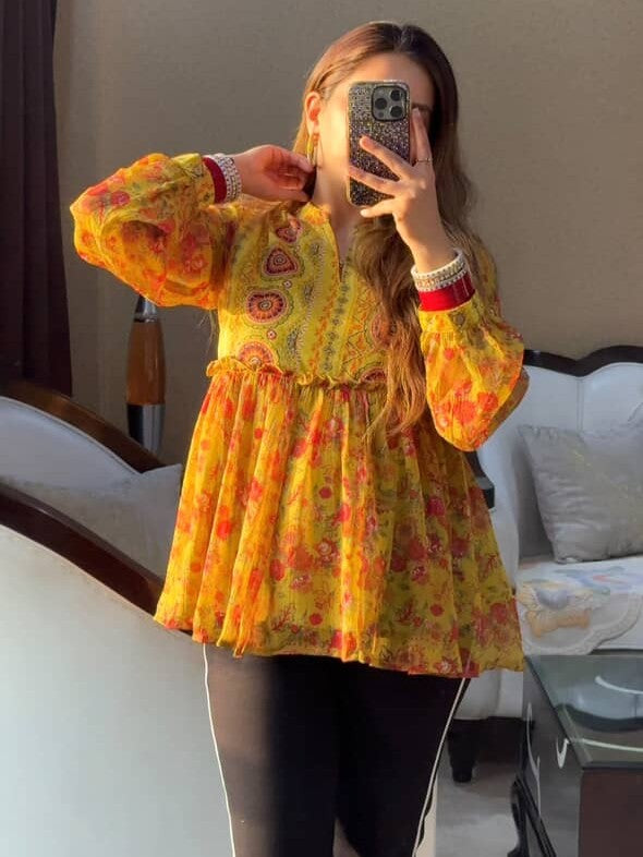 As playful as spring and as bold as your spirit — Kaaya is made for days when you want to bloom effortlessly. With vibrant florals, a striking cotton yoke, and dreamy georgette flare, this kurti flows like a breeze and flatters every silhouette.